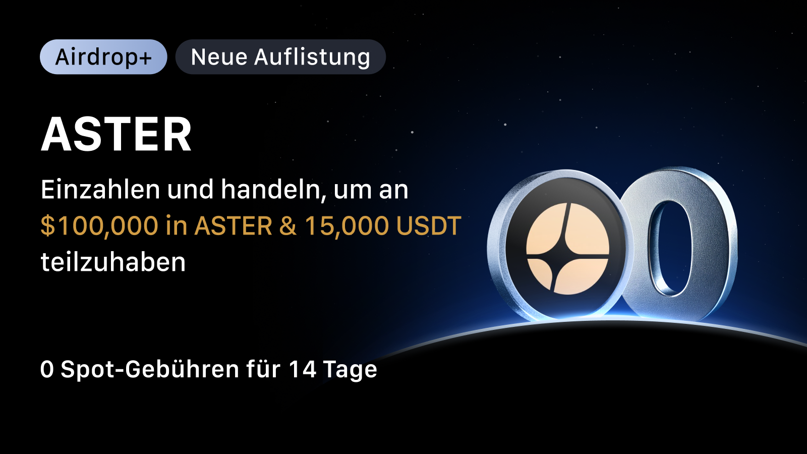 [Airdrop+] Feiern Sie die Auflistung von Aster (ASTER) mit einem Preispool in Höhe von $100.000 in ASTER + 15.000 USDT!