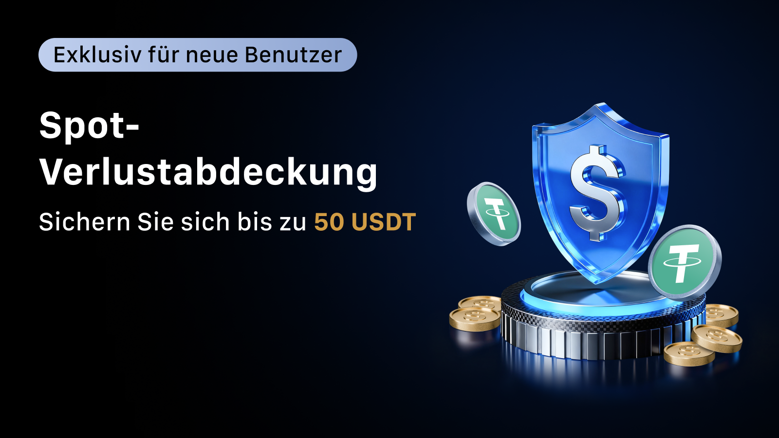 Tätigen Sie während des Eventzeitraums Ihren allerersten Spot-Handel und profitieren Sie von bis zu 50 USDT Verlustabdeckung, falls der Preis fällt. Dieses Angebot ist auf die ersten 1,000 berechtigten Benutzer begrenzt – verpassen Sie nicht Ihre Chance, mit Vertrauen zu handeln!