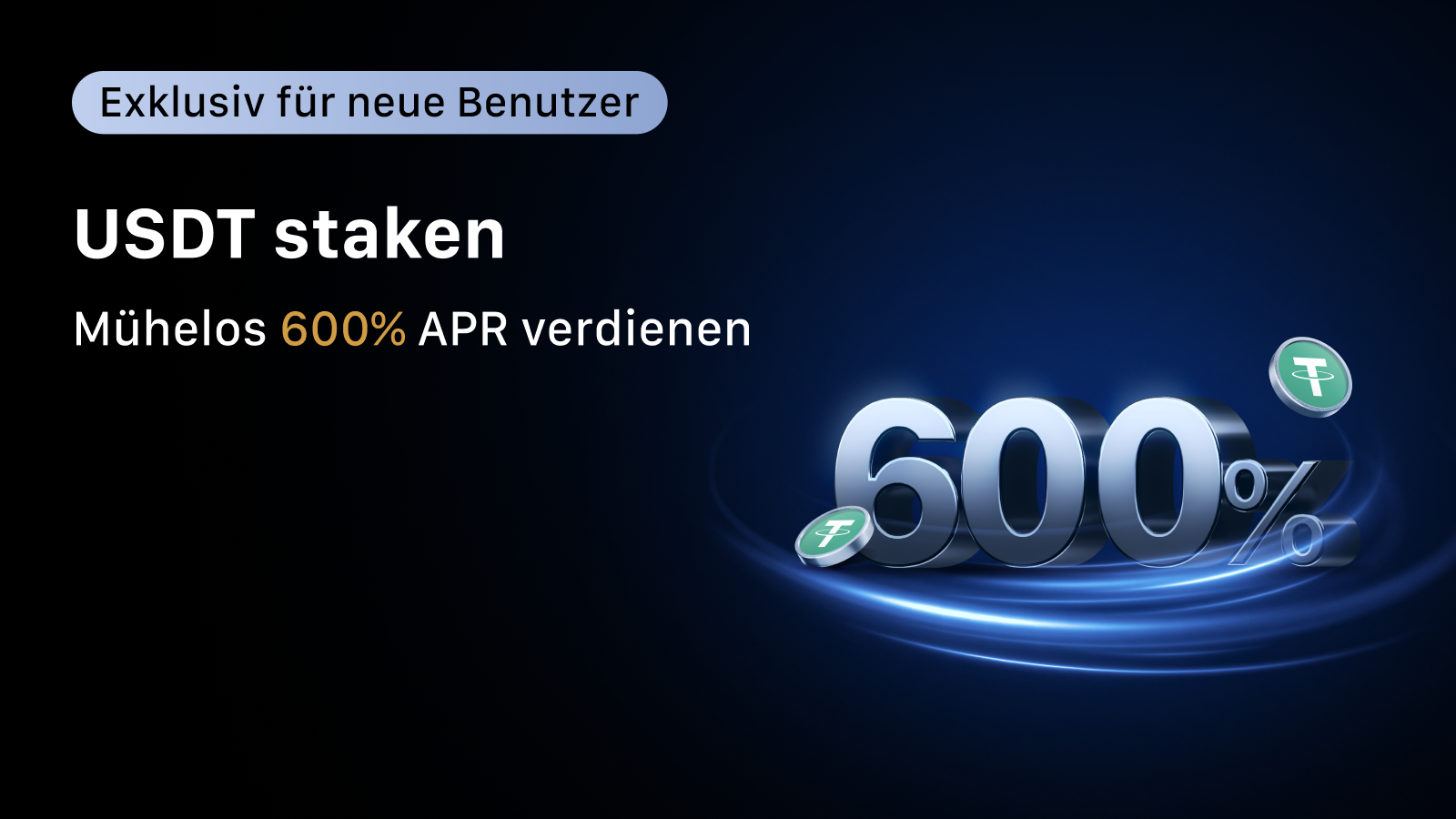 Möchten Sie Ihre Vermögenswerte passiv wachsen lassen? Die USDT Stake-to-Earn Gala ist jetzt live – exklusiv für neue Benutzer! Ihre goldene Gelegenheit, 600% APR zu verdienen – einfach durch das Staken Ihrer USDT.