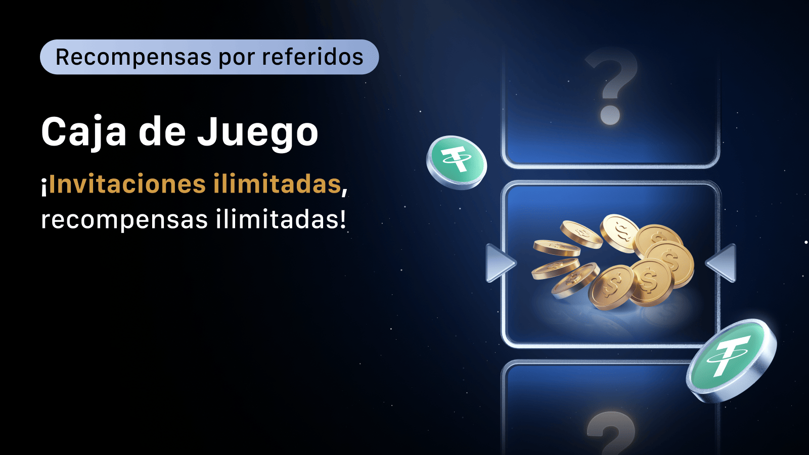 La Caja de Juego por Referidos regresa para su Temporada 5, ¡para continuar la diversión con la experiencia gratificante que ya conoces y amas! Invita a tus amigos, abre tu caja de la suerte y gana hasta 100 USDT cada uno: ¡acumula tantas recompensas como quieras!