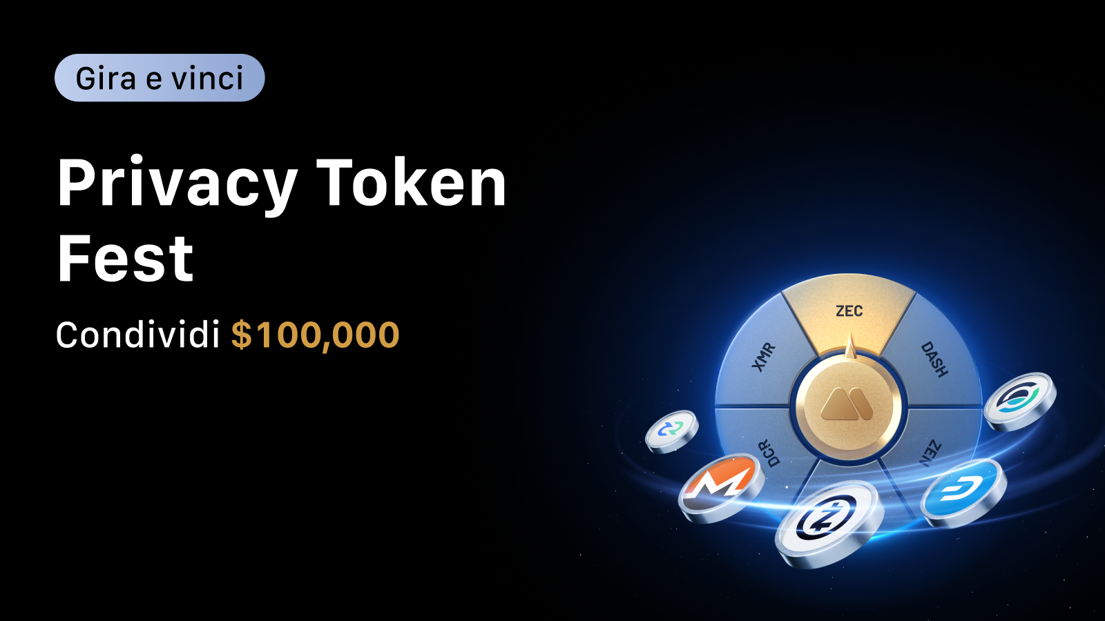 Festeggia la potenza della privacy con il Privacy Token Fest di MEXC! Completa semplici attività, gira la ruota e vinci la tua quota dei $100.000 nei migliori token per la privacy come ZEC, XMR, DASH, DCR e molti altri!