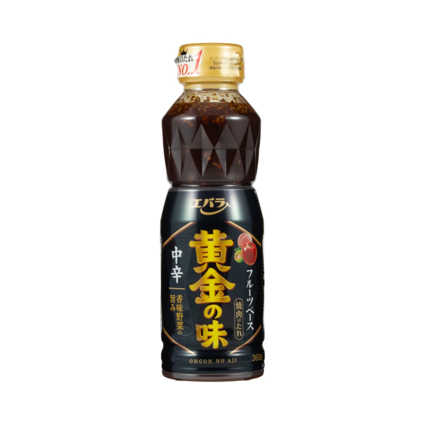 エバラ食品工業の「黄金の味 中辛」は、りんご・もも・うめなどを秘伝の黄金比率でブレンドしたフルーツベースの焼肉のたれです。国産りんご100%使用しており、重量の30%以上をりんごが占めます。1978年の発売以来、家庭の食卓で愛され続けるロングセラー商品です。肉に絡みやすいドロっとした濃厚な食感とフルーツの甘さが特徴で、おいしさの検証では非常に高い評価を獲得。試食したモニターから「濃い目で、にんにくの味わいもして好みの味」「玉ねぎやりんごの甘さがあっておいしい」といった声が集まりました。モニター12人全員がおいしさについて「とても満足」または「満足」と回答しており、万人受けしやすい味といえます。料理の味付けや料理の隠し味にも活躍するでしょう。