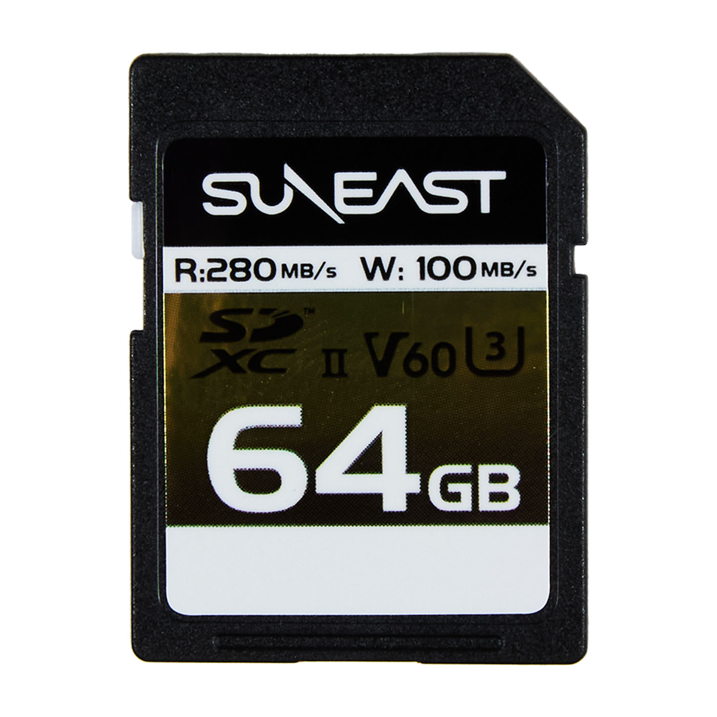 旭東エレクトロニクスの「SUNEAST ULTIMATE PRO SDXC UHS-II Card」はUHS-Ⅱ対応モデルで、ほかのUHS-Ⅰ対応商品に比べるとバッファ処理が速く、書き込み速度は高速といえます。ベンチマークテストでの書き込み速度は平均105.2MB/sを記録しました。実際にカメラを使って連写を行い、MAX分のバッファを解消するのにかかった時間は平均26.95秒と30秒を切っています。上位商品にはおよばなかったものの十分処理が高速なので、連写シーンで活躍するでしょう。ビデオスピードクラスはV60で、ハイエンドのミラーレス一眼での4K60fpsの動画撮影にもおすすめ。対応しているカメラは少ないものの、手持ちのカメラがUHS-Ⅱ対応であれば、ぜひ試してみてください。