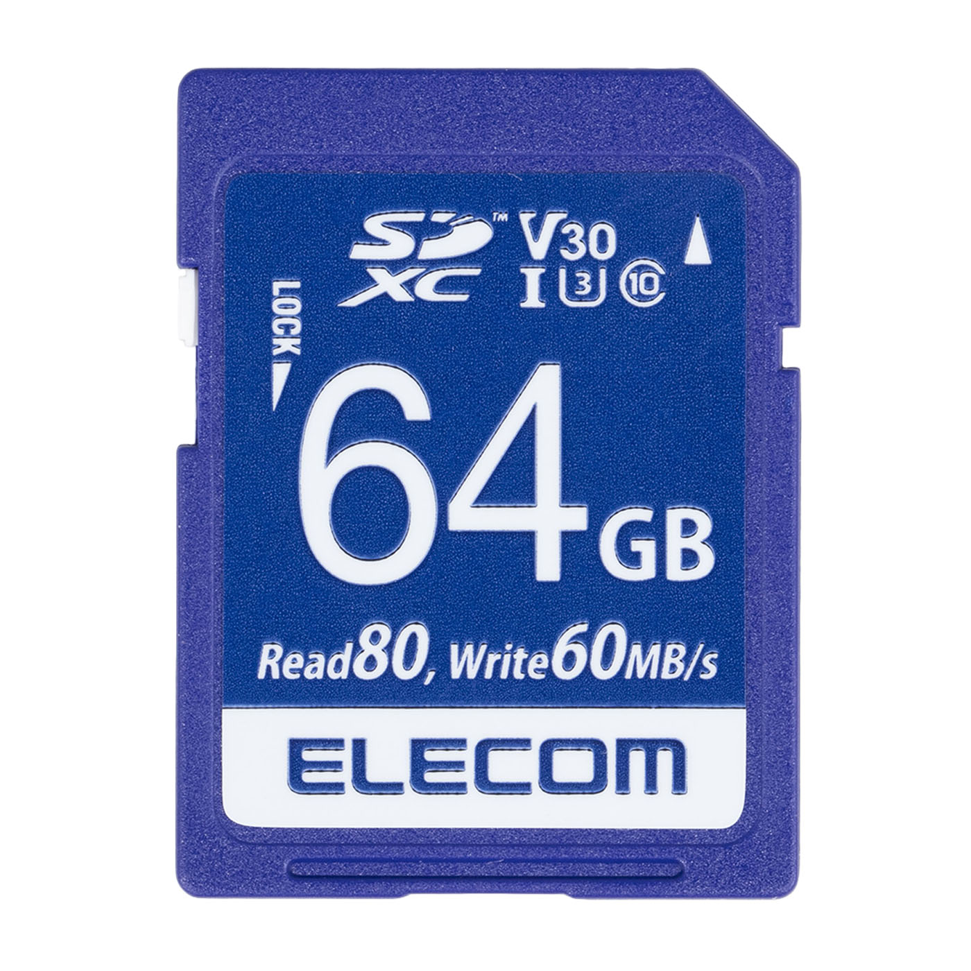 大阪府に本社を置く電子機器メーカー、エレコムの「データ復旧SDXCカード」。バスインターフェースはUHS-Ⅰ、UHSスピードクラスは3、ビデオスピードクラスはV30です。ベンチマークテストでは書き込みの平均が69.2MB/sで、公称値である最大60MB/sを上回る数値が出ました。上位には及ばないものの速い結果です。MAX分のバッファが解消するのにかかった時間は32.7秒。今回検証した商品のなかでは速いほうで、上位には及ばないものの優秀な商品といえるでしょう。データ復旧サービスがついており、1年間の保証期間内であればメーカーに送ってデータの復旧を依頼できます。依頼するときには購入時のレシート・パッケージも一緒に送付する必要があるので、購入後も1年間は取っておきましょう。