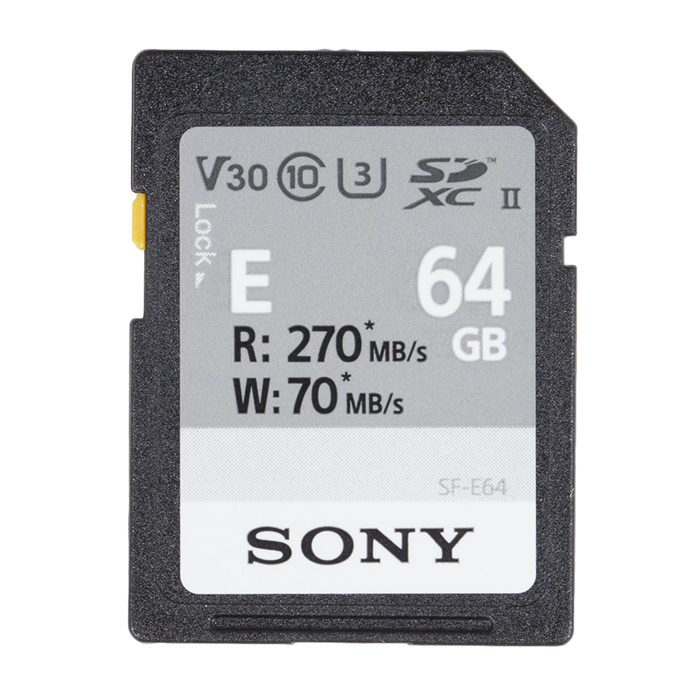 国内の総合電機メーカー、SONYの「SDXC UHS-II メモリーカード」。バスインターフェースはUHS-Ⅱ、UHSスピードクラスは3、ビデオスピードクラスはV30です。ベンチマークテストの結果は書き込みの平均が107.2MB/sで、今回検証した商品のなかでも非常に速い数値が出ました。カメラで使用したあと、PCでデータのやり取りをするにも転送の待ち時間が少なく、便利なSDカードといえます。MAX分のバッファが解消するのにかかった時間は23.4秒。処理能力が非常に高く、検証したカメラではバッファが一杯になっても1秒ほどあとには次の1枚が撮影できました。処理能力が非常に高いので、とにかく連写を途切れさせたくない人にぴったりです。しかし、UHS-Ⅱ対応の機器でないとこの速度は活かせないため、購入前に使用したい機器との互換性を確認しておきましょう。