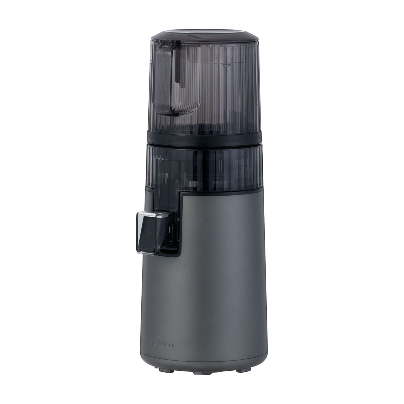 HUROMは、韓国発のスロージューサー専業メーカーで、世界的にも高い評価を受けています。「スロージューサー H-200」は、広い投入口や手入れのしやすさが特徴で、調理の手軽さを重視した設計です。搾汁率はにんじんで39.9%と低めでしたが、オレンジは66.0%、小松菜は69.3%と高めで、やわらかい食材を中心に使う人は効率よく使用できるでしょう。手入れのしやすさでは、13個とパーツは多いものの、パッキンまで取り外せて丸洗いも可能。開閉式のカス排出口や洗浄ブラシの付属もあり、日々の清潔さを保ちやすい仕様です。ジュースの仕上がりは、にんじんで88.2%、オレンジで84.1%、小松菜で91.3%と全体的に繊維感が残る結果に。ビタミンCの残存量は高く栄養はしっかり摂れるものの、滑らかさを重視したい人にとっては物足りないでしょう。また、圧搾時間はにんじんで5分2秒、オレンジで7分44秒、小松菜では11分54秒と全体的に長めで、スピーディに搾汁したい人には不向きです。調理の手軽さや手入れのしやすさには魅力がありますが、ジュースの滑らかさや搾汁スピードを重視する人には物足りなさも残ります。ジュース作りに効率性や仕上がりのよさを求める人は、ほかのモデルも検討するとよいでしょう。