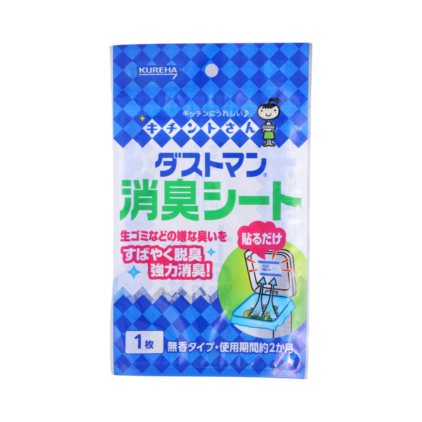 クレハの販売する「キチントさん ダストマン 消臭シート」は、価格が100円台と割安で手軽に試せるのが特徴です。活性炭と銅ゼオライトのWパワーにより、魚・肉・野菜臭やその腐敗臭を脱臭・消臭。蓋の裏に貼って使用し、約2ヶ月と長期間効果が持続すると謳っています。