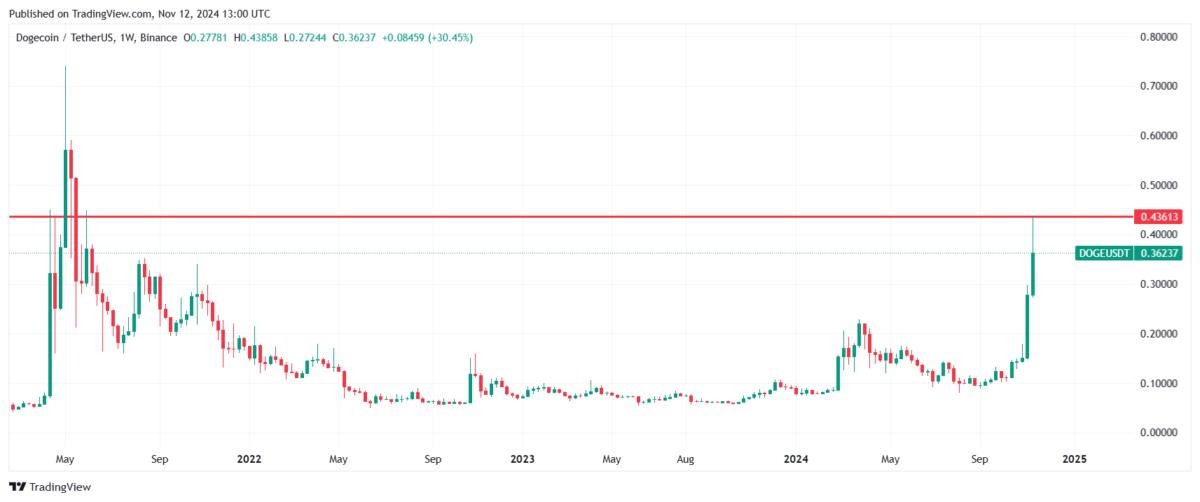 2024 Surge: Dogecoin saw a massive price increase of approximately 250% in 2024. This surge was fueled by both market trends and increased social media promotion. During this period, Dogecoin was among the top performers in the crypto market, outperforming even Bitcoin and Ethereum.
