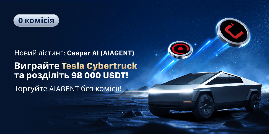Відсвяткуємо лістинг Casper AI (AIAGENT) на MEXC зі захопливими винагородами! Торгуйте AIAGENT/USDT на споті без комісій, отримайте шанс виграти Tesla Cybertruck та розділити призовий пул у 98 000 USDT! Ця спеціальна подія відкрита як для нових, так і для існуючих користувачів — не пропустіть свій шанс виграти великі призи!