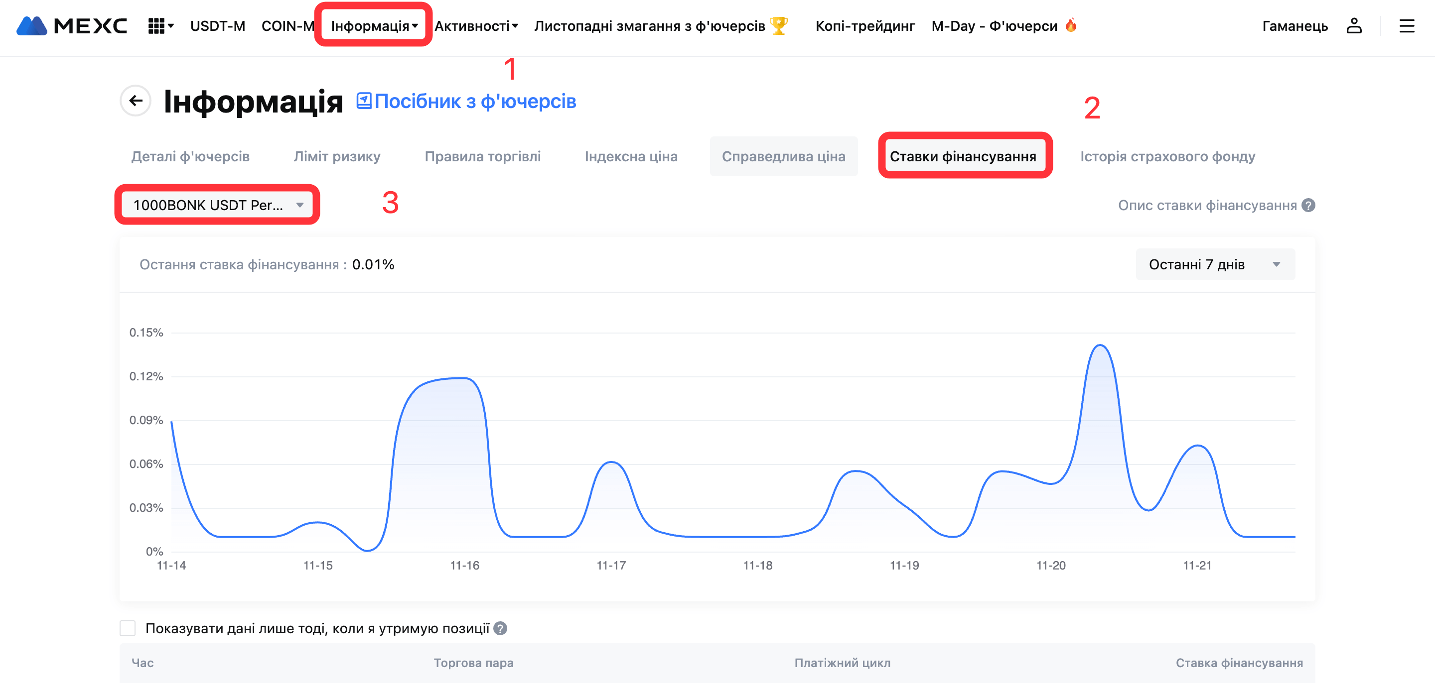 22 листопада 2023 року о 16:50 (за Києвом) на MEXC було змінено частоту розрахунку ставки фінансування безстрокових ф'ючерсів 1000BONK USDT-M. Нова періодичність розрахунків тепер становить раз на 4 години.