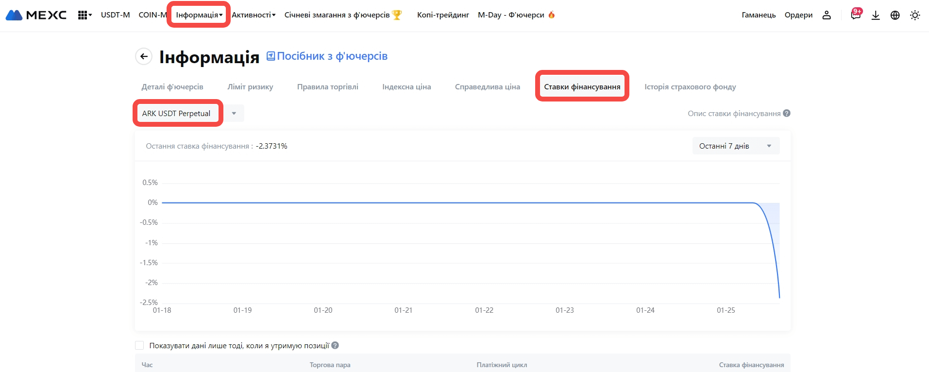 25 січня 2024 року о 10:45 (за Києвом) на MEXC було змінено частоту розрахунку ставки фінансування безстрокових ф'ючерсів ARK USDT-M.