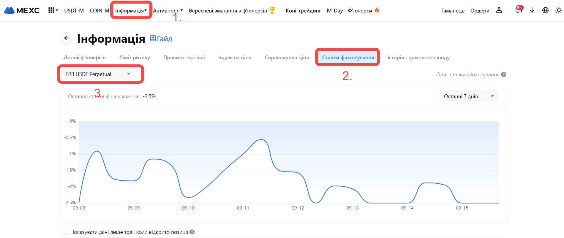 Вебсайт: Інформація >> Історія ставок фінансування.