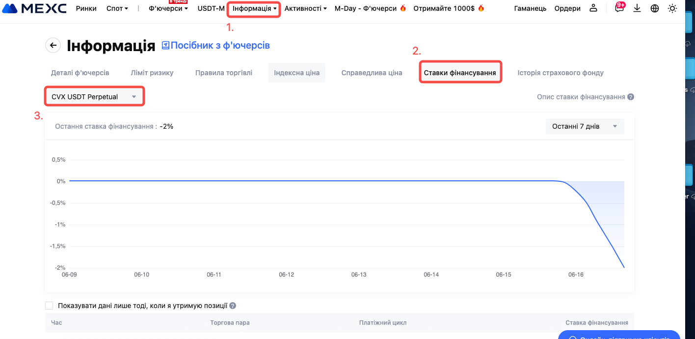 Остання інформація про ставки фінансування наведена у вкладці Інформація - Ставки фінансування