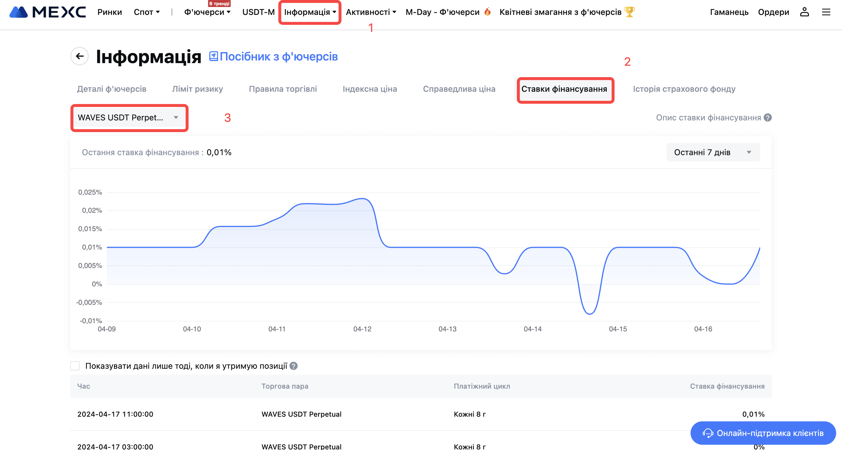 Вебсайт: Інформація >> Історія ставок фінансування.