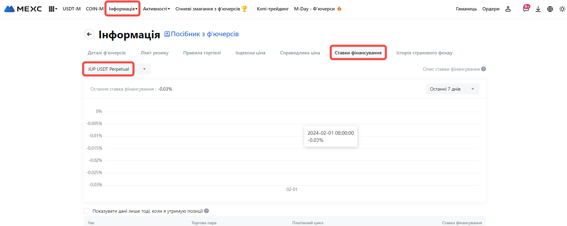 Остання інформація про ставки фінансування наведена у вкладці Інформація - Ставки фінансування