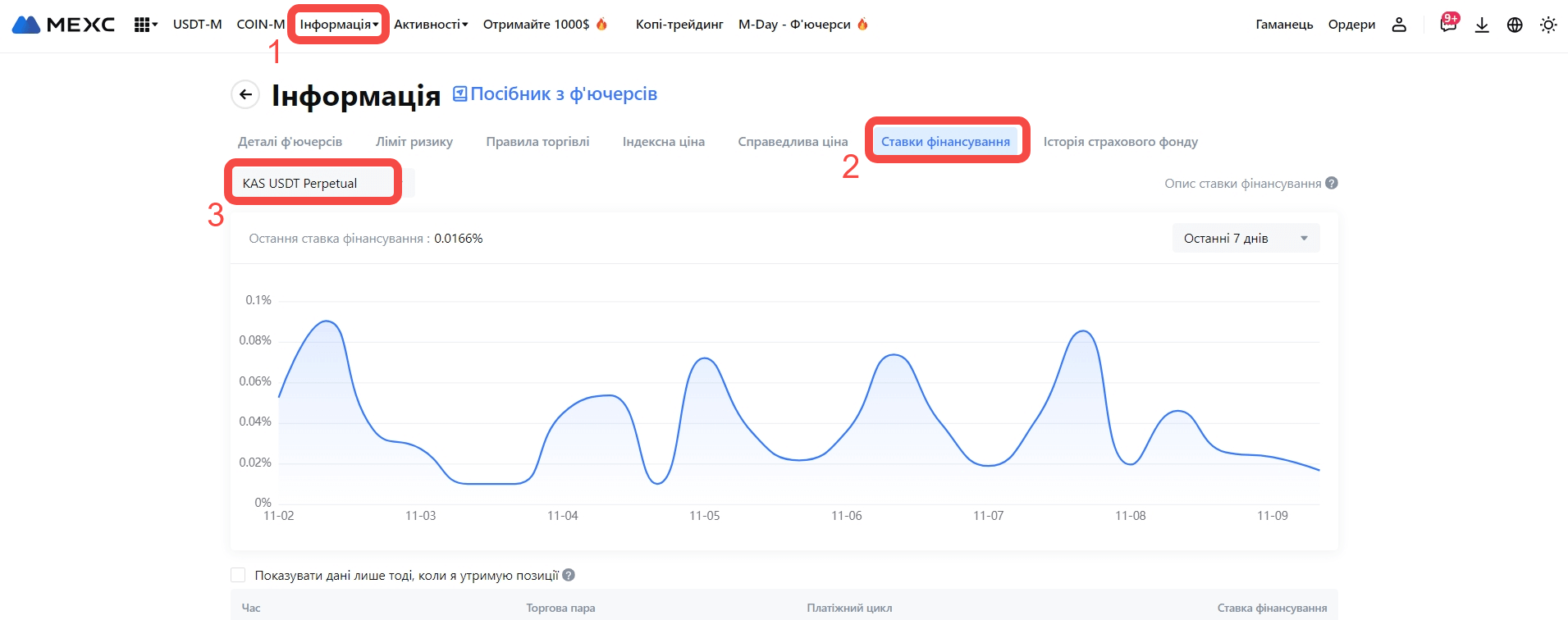 9 листопада 2023 року о 04:40 (за Києвом) на ф'ючерсах MEXC було змінено частоту розрахунку ставки фінансування безстрокових ф'ючерсів KAS USDT-M. Нова періодичність розрахунків тепер становить раз на 4 години.
