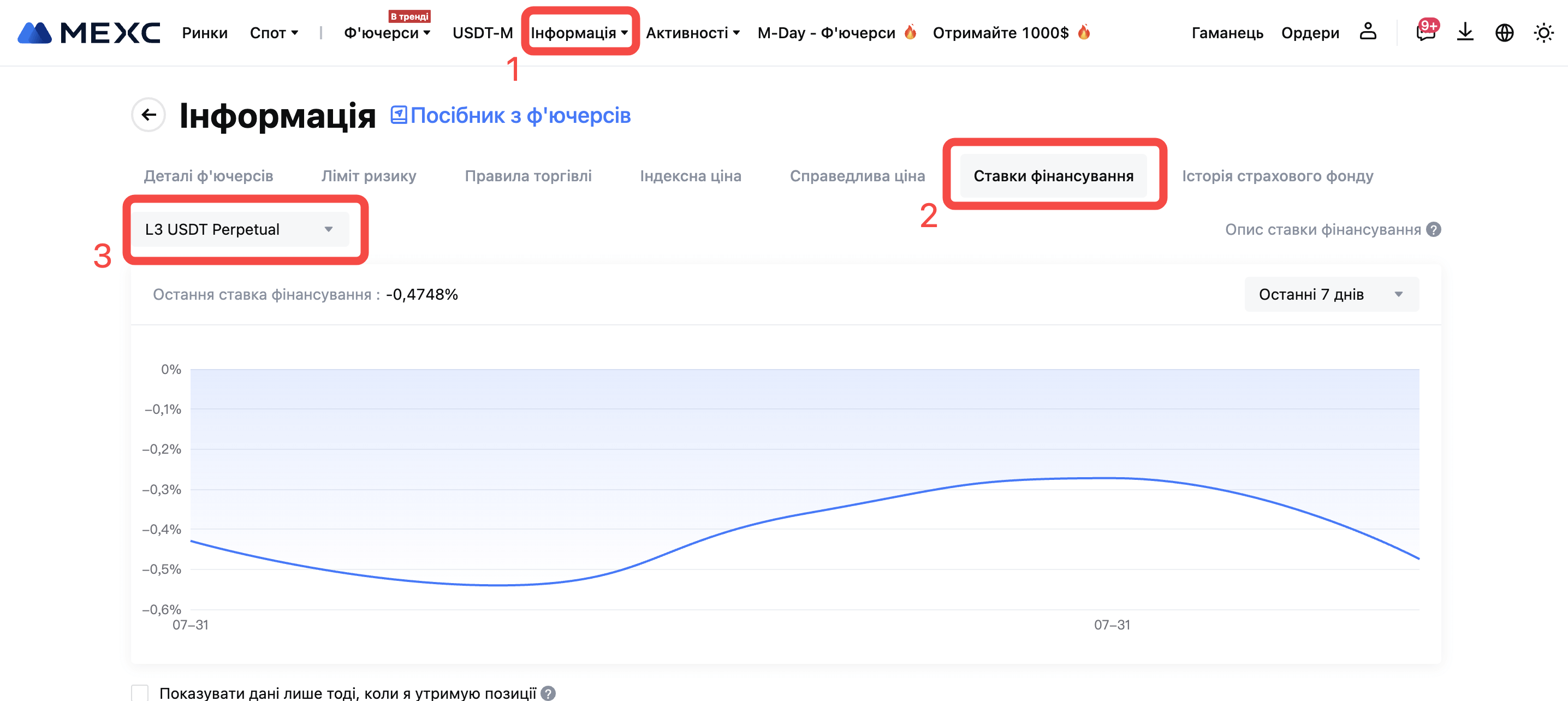 Остання інформація про ставки фінансування наведена у вкладці Інформація - Ставки фінасування