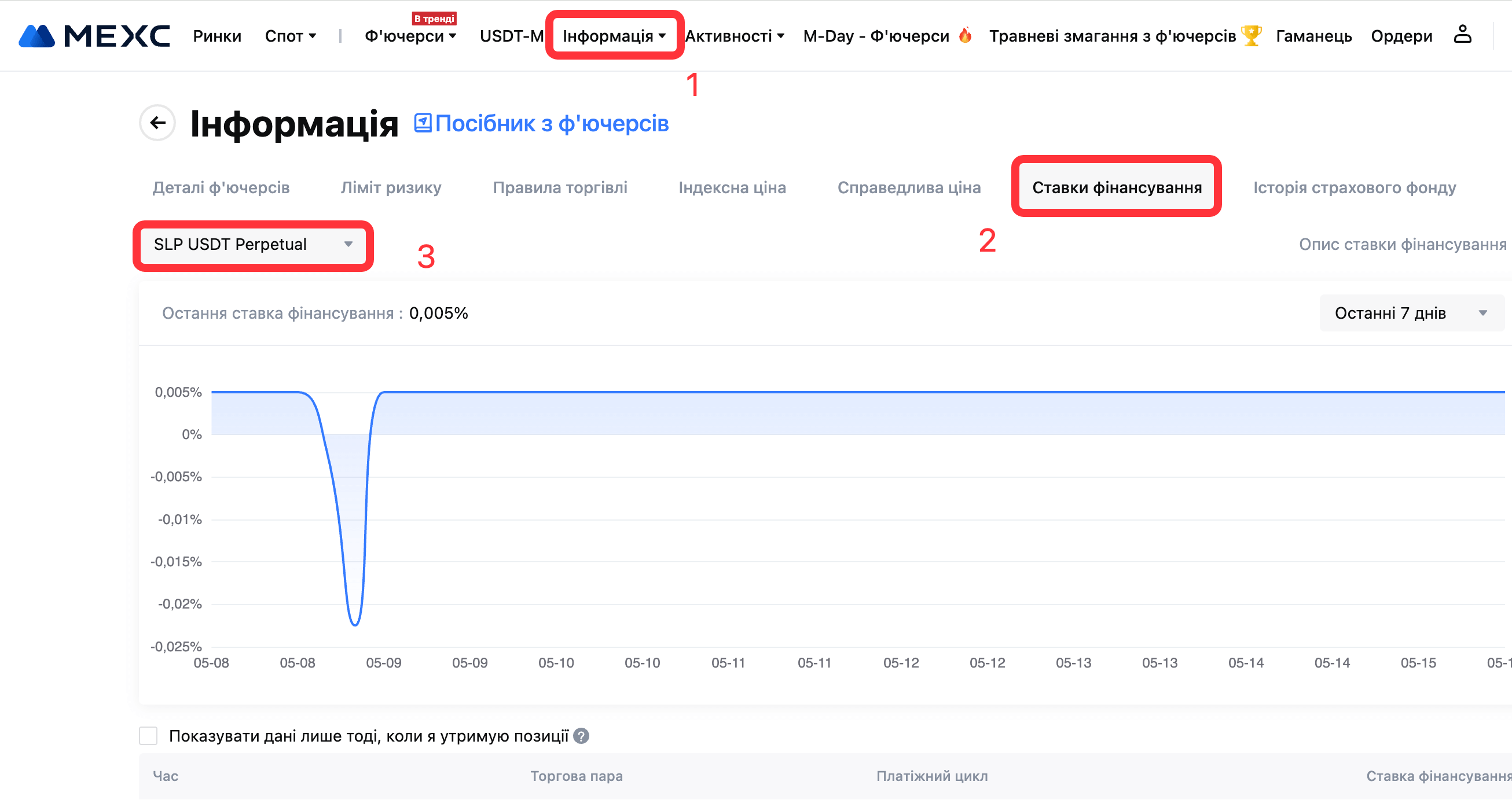 Остання інформація про ставки фінансування наведена у вкладці Інформація - Ставки фінансування