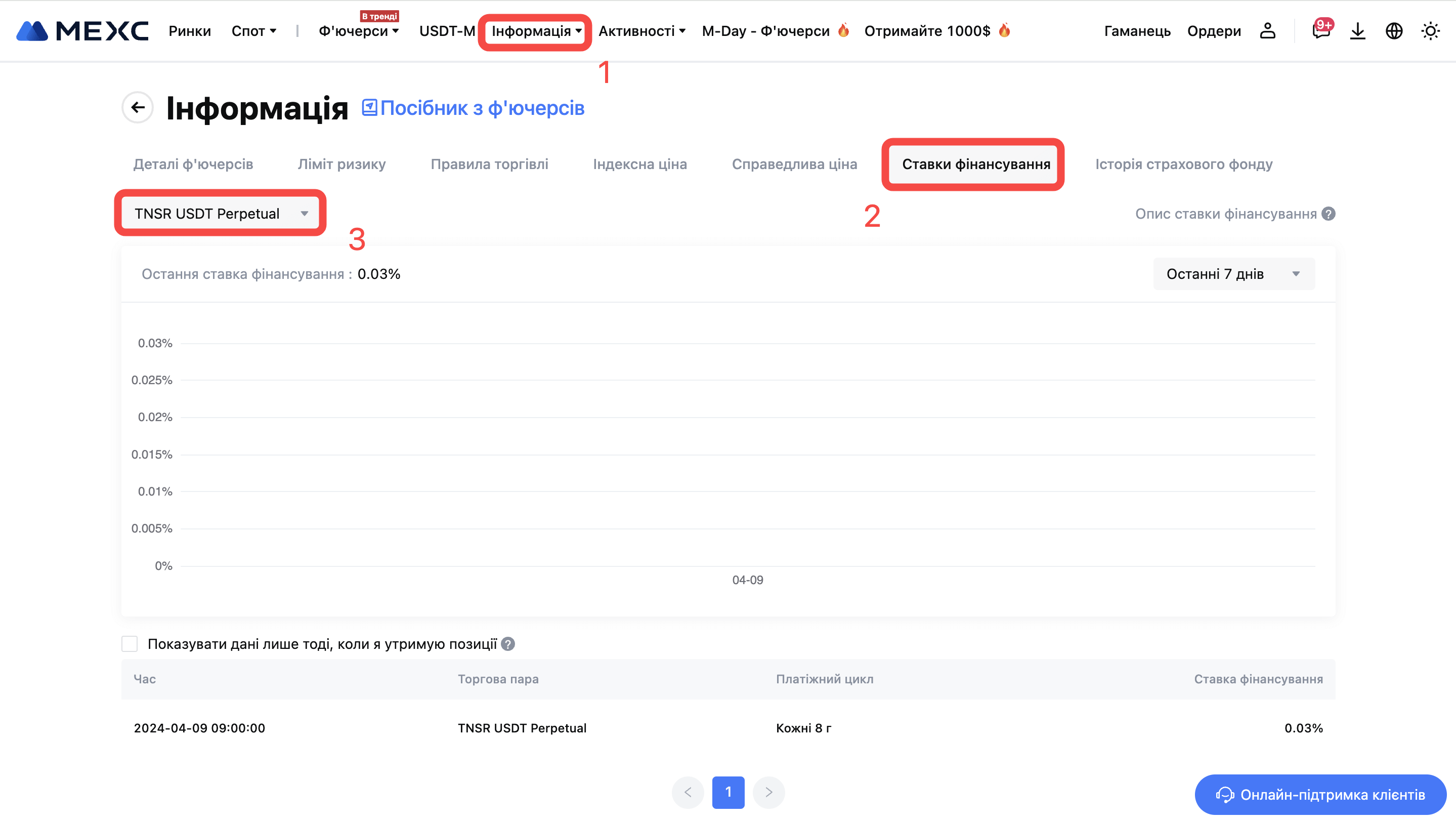 Остання інформація про ставки фінансування наведена у вкладці Інформація - Ставки фінансування
