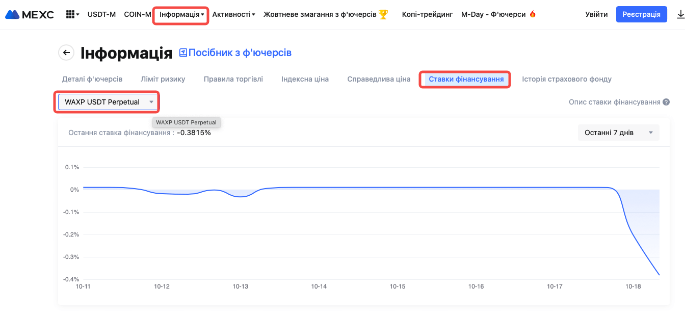 19 жовтня 2023 року о 5:15 (за Києвом) на ф'ючерсах MEXC було змінено частоту розрахунку ставки фінансування безстрокового ф'ючерсу WAXP і STPT USDT-M. Нова періодичність розрахунків тепер становить раз на 4 години.