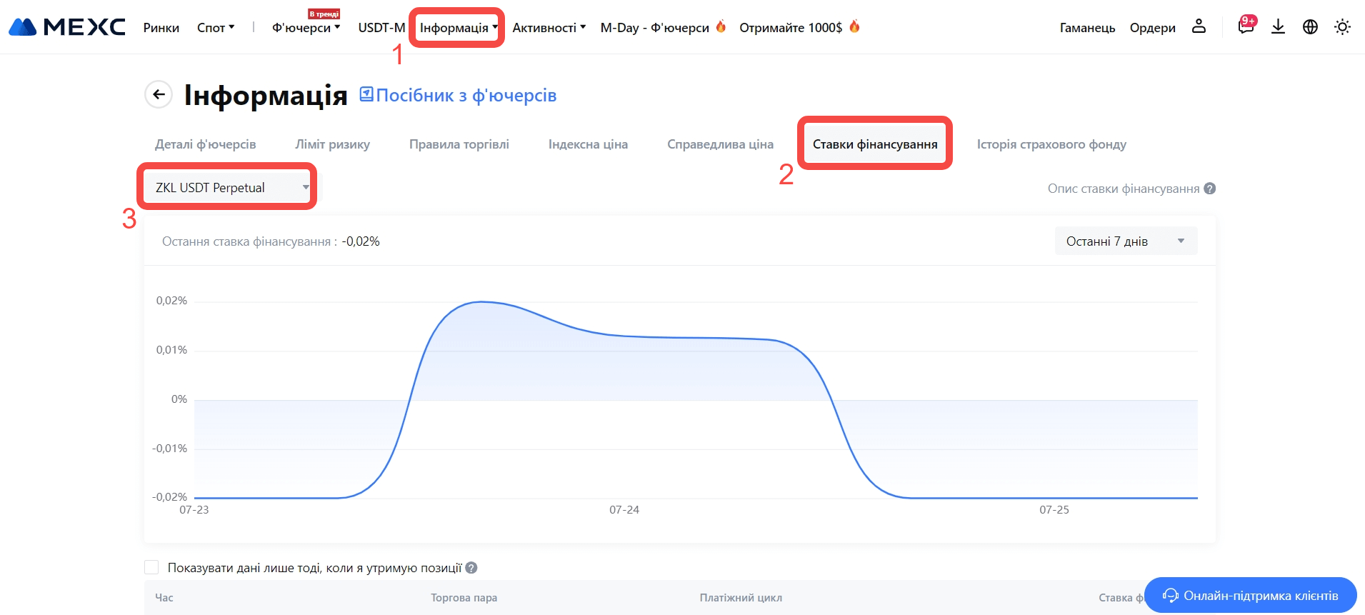Остання інформація про ставки фінансування наведена у вкладці Інформація - Ставки фінасування