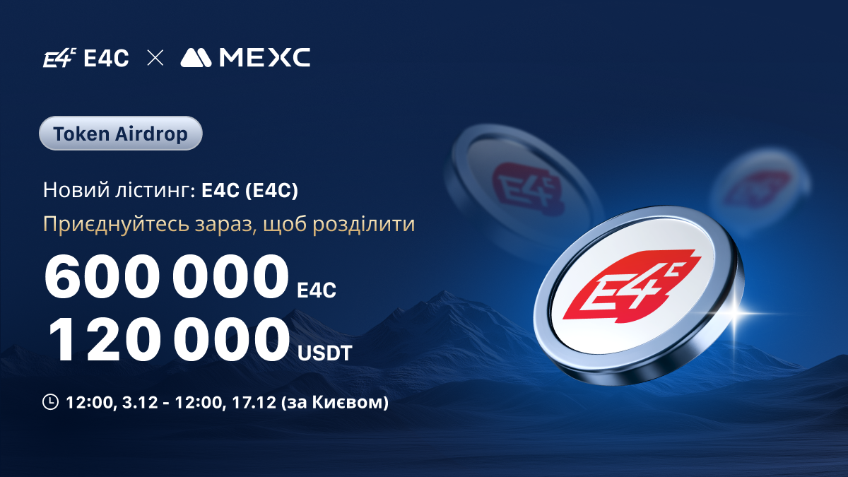 - Зареєструйтесь для участі в події Token Airdrop з E4C.