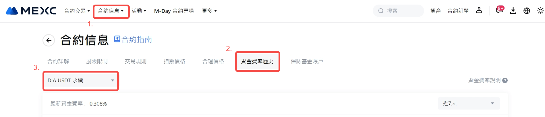 您可以通過“合約信息-資金費用歷史”了解最新的資金費率詳情。