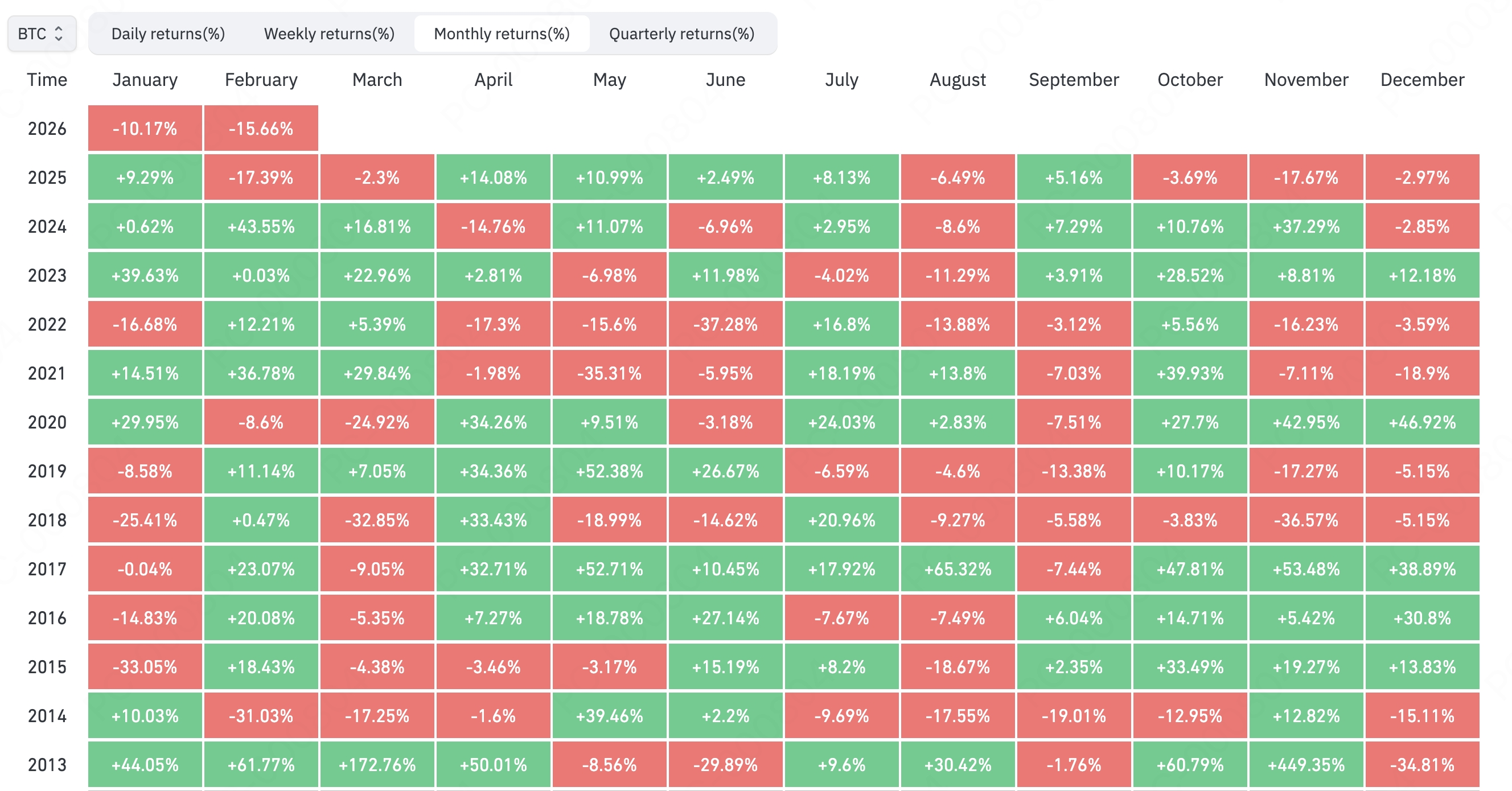 加密貨幣毫無防備地闖入了宏觀經濟的寒冬。本週,比特幣跌破 67,000 美元,在 66,500 至 67,000 美元區間徘徊。研究機構 K33 的模型顯示,市場狀況令人聯想起 2022 年底的行情:現貨成交量下降了 59%,多頭倉位正在離場,ETF 持倉量也出現創紀錄的回落。未來看似將是一個在 60,000 美元到 75,000 美元之間長期盤整的局面。如果第一季度維持這一走勢,可能標誌著自 2018 年以來最疲軟的一季度表現。