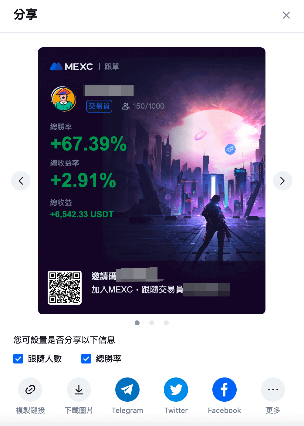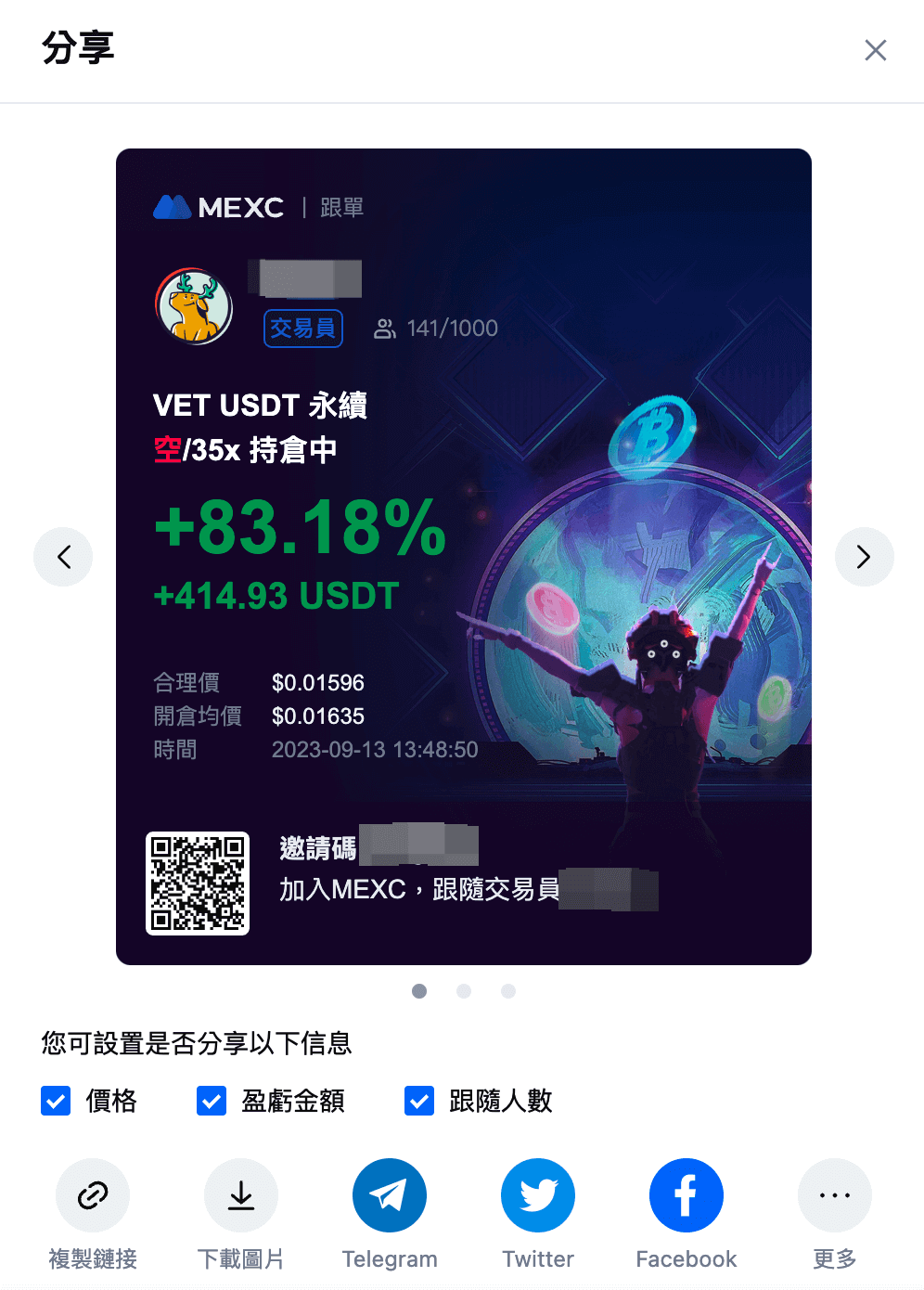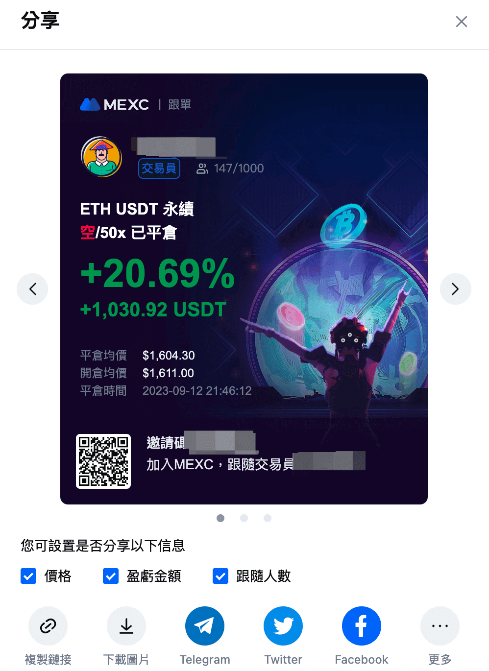 2. 分享帶單盈虧數據(交易員和跟隨者都可以分享此數據)