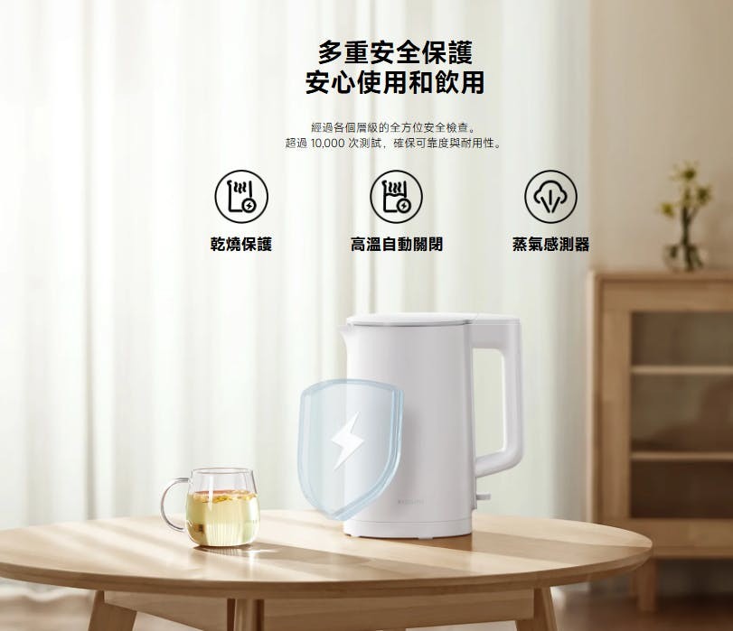 內膽的部分使用的是304不鏽鋼,電源方面也有多重保護機制,電源功率為1000W,並且有乾燒保護避免發生意外。對於像我這種喜歡冬天上班前來杯熱飲、咖啡的人來說,能夠便宜且快速滿足我煮沸需求就是不錯的產品。