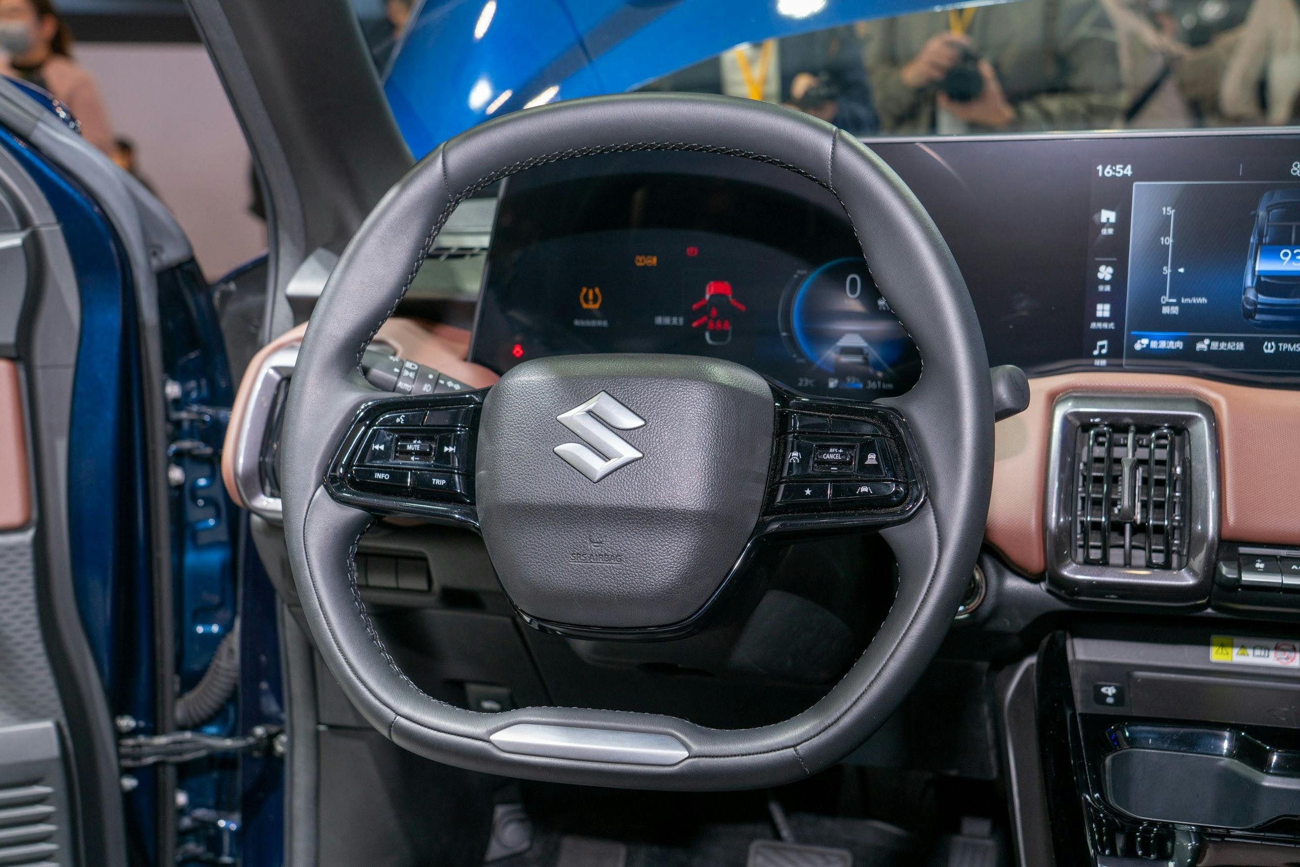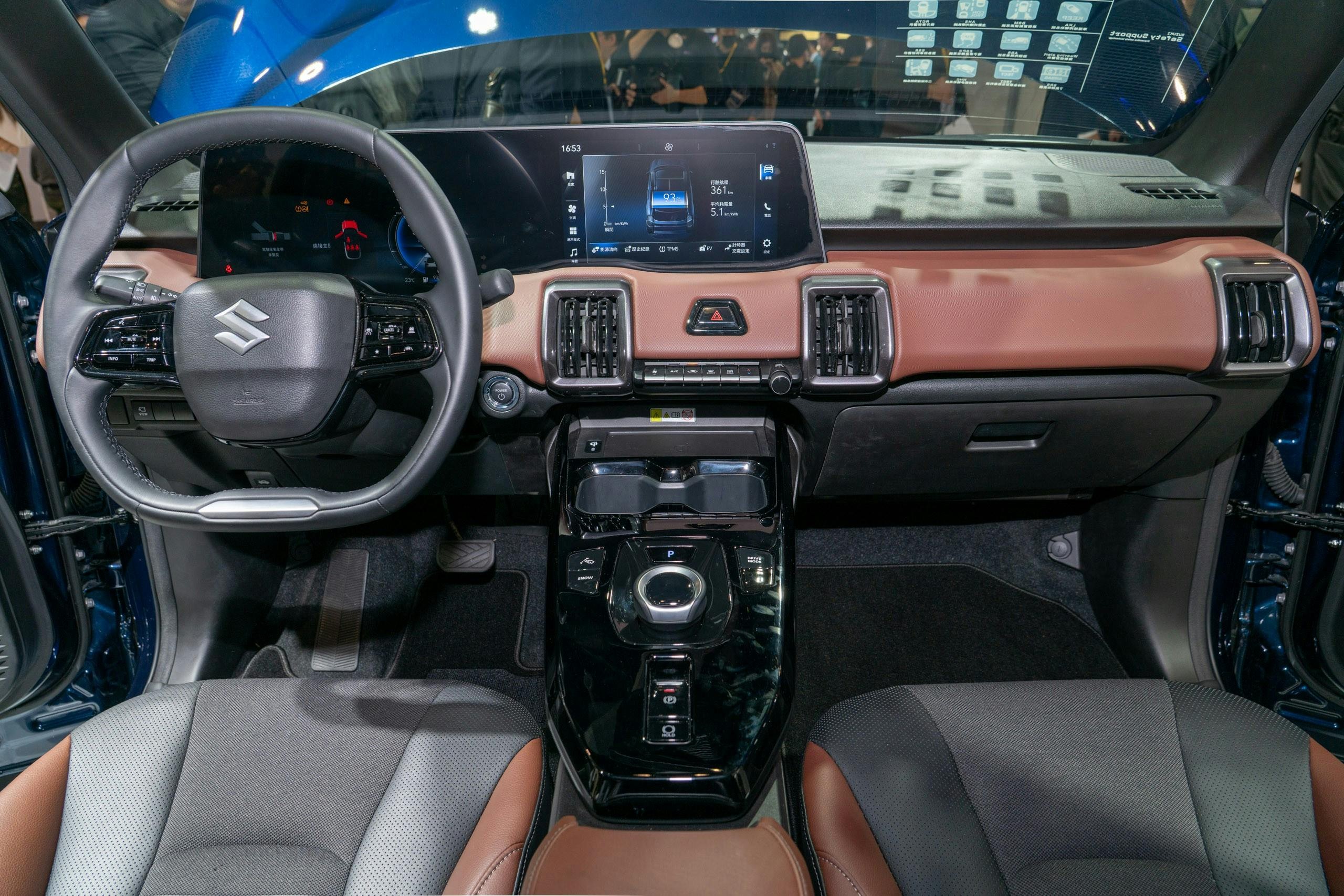 車頭採用六角形輪廓與橫向線條配置,搭配三點矩陣式燈具設計,強化夜間辨識度,也刻意與傳統燃油 VITARA 拉開風格差異。整體尺碼為 4,275 × 1,800 × 1,635 mm,屬於偏向中型 SUV 的設定,兼顧市區使用與家庭、戶外情境需求。