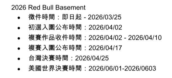 2026 Red Bull Basement相關資訊與報名辦法詳見活動官網:2026 Red Bull Basement