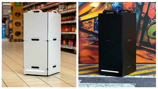 MOBI 配備自動導航與避障系統,能自主判斷路徑、跟隨使用者移動,也可透過遠端遙控進行輔助操作。推車有兩個可折疊儲物箱,每個可承載 15 公斤,合計 30 公斤,折疊後長度僅 55 公分,方便收納與堆疊。整車重量約 12 公斤,推行或搬運仍算輕便。電池可連續使用約4小時,並可搭配追蹤裝置,減少遺失風險。