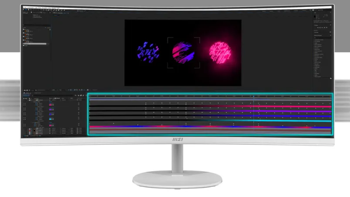 若你把螢幕用於影片剪輯,操作軟體時下方可以放時間軸,21:9的螢幕比例能更完整呈現時間軸而不需要反覆縮放。日常文書作業也能利用34吋大螢幕與寬螢幕設計擺放更多視窗,能同時操作多個視窗而不需要切換,是這類螢幕的優勢。另一方面,1500R曲度的設計讓你瀏覽螢幕時能更自然,盡量維持視距的一致。